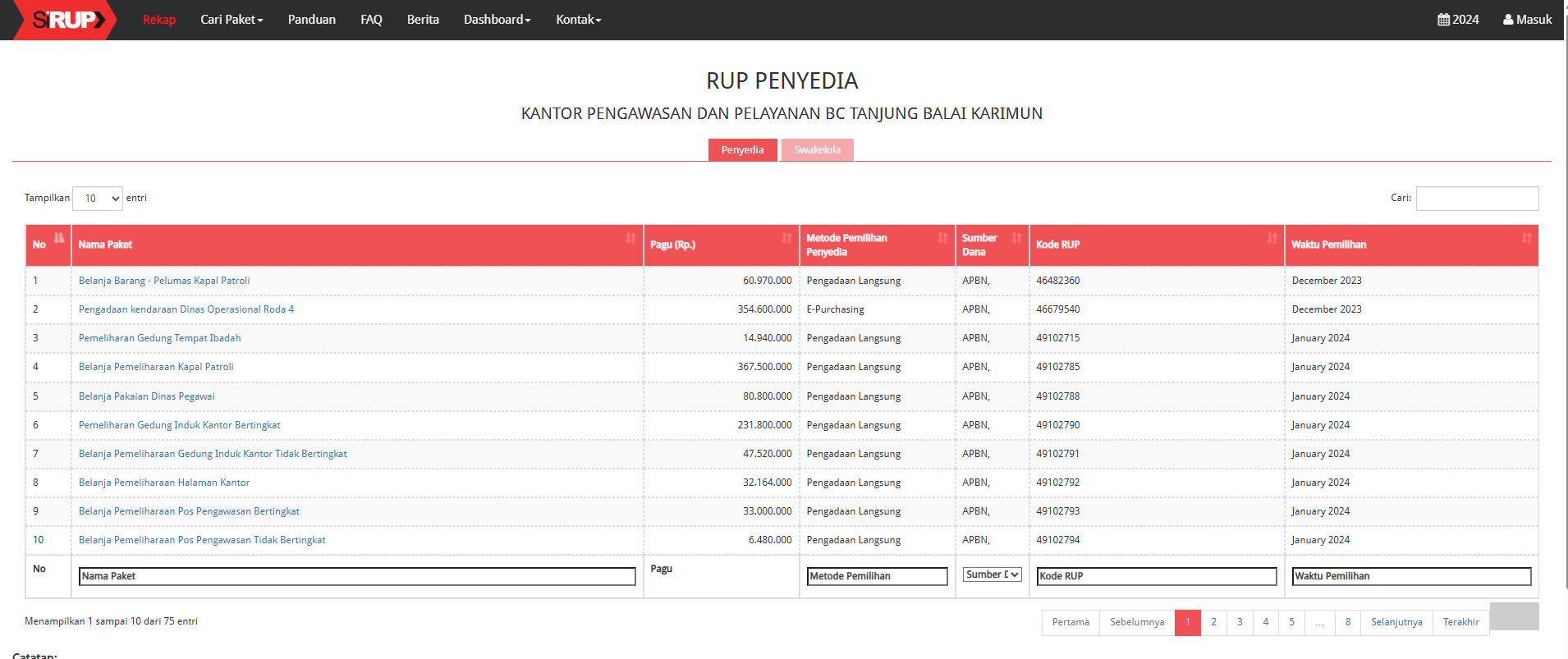 4. Daftar paket pengadaan Tahun 2024 akan tampil di layar.